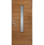 Clara Ek är en ytterdörr i modern stil med stående klarglas och liggande dekor. Diplomatdörren Clara kan fås i vit, konstteak eller valfri kulör. Insidan är slät, men går att få dekorerad som utsidan.