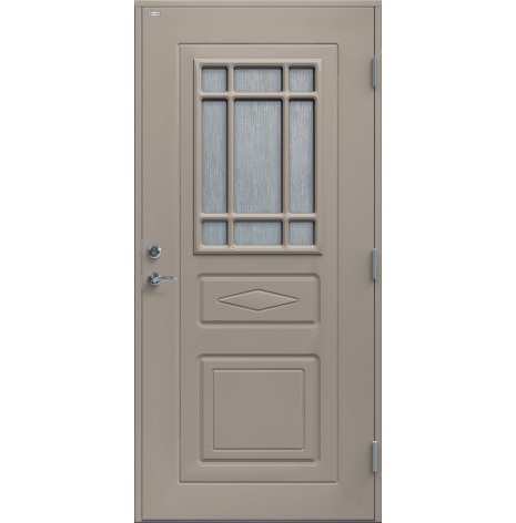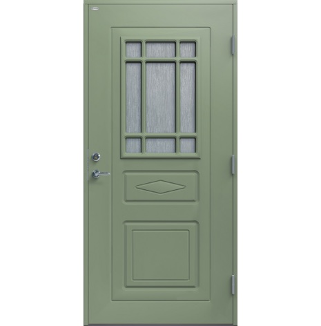 Diplomatdörrar har personsäkert treglas i alla glasade ytterdörrar. 3 st gångjärn med bakkantsäkring, låshus Assa 2002 med hakregelkolv och borta säker funktion där du kan aktivera dörren så den endast kan öppnas med nyckel även från insidan. Detta förhindrar t.ex. att glaset kan krossas och dörren öppnas med vred från insidan.