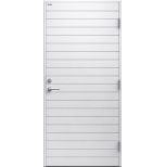 Ingela tät är en ytterdörr i modern stil med spårfräst dekor i form av liggande panel. Finns i ek, konstteak eller kulör. Insidan är slät, men går att få dekorerad som utsidan. Dörr och karm levereras vit NCS S 0502-Y som standard.