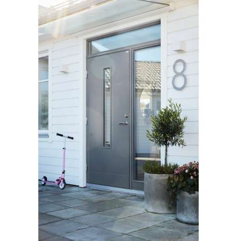 En ytterdörr ska vara välkomnande och är det första du och dina besökare möts av. Du kan ge din nya dörr ett personligt utseende med något av våra tillval. Du kanske vill byta ut glaset, eller välja en annan färg. Stilmässigt kan handtagen vara pricken över i på en ytterdörr. Vi har flera olika beslagspaket att välja bland, både traditionella och stilrena varianter, samt elektroniskt lås. Tittöga, sparkplåt eller dörrbroms är andra tillval som får dörren både snygg och funktionell.