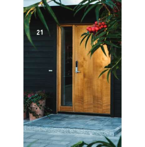 Handtag, låscylinder och cylindertillbehör ingår ej, men kan beställas under våra tillval. Alla våra kompletta behörssatser är anpassade för borta säkerfunktionen med dubbla cylindrar, vred på insidan och levereras med 5 st nycklar. Du kan även välja till ett elektroniskt lås från Yale Doorman.