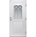 Linnea är en ytterdörr i traditionell stil och klarglas med karakteristiska dekorspröjs. Dörr och karm levereras vit NCS S 0502-Y som standard.