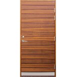 Våra Ek- och Teak-dörrar har en kraftig stomme med dubbelt ramträ, precis som våra andra dörrar. Ekdörrar är fanerade med Ek av A-kvalitet på in- och utsida. Teakdörrar är fanerade med Teak av A-kvalitet på utsidan och Teakinfärgat fanér på insidan. Dörrbladen har massivt ramträ i Ek/brunlaserad Ek. Karmen är gjord av massiv ek med mycket hög kvalitet. Tröskeln är i slitstark hårdträ med slitskena.