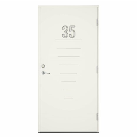 Trace är spårfräst på ut- och insida. Dörr och karm levereras vit NCS S 0502-Y som standard.