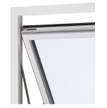 Svenska Fönster Rak Profil (fd Traryd Optimal) 3-glas vridfönster, glasdelande bågpost och aluminiumklädd utsida.