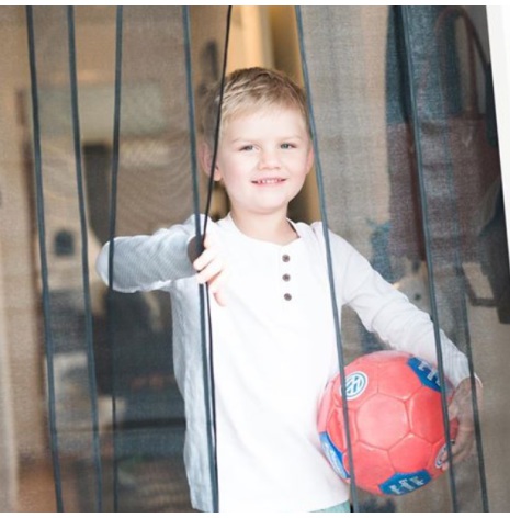 En enkel och ekonomisk lösning för att skärma av dörröppningen. Draperiet består av nätsektioner med tyngder i botten och bandade kanter. Gardinen monteras i en skena som enkelt kan plockas ner vid behov. Idealisk för familjer med barn eller husdjur. Kapas och monteras på plats.