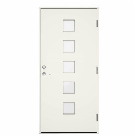 Dice är slät på ut- och insida. Dörr och karm levereras vit NCS S 0502-Y som standard.