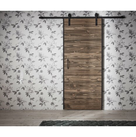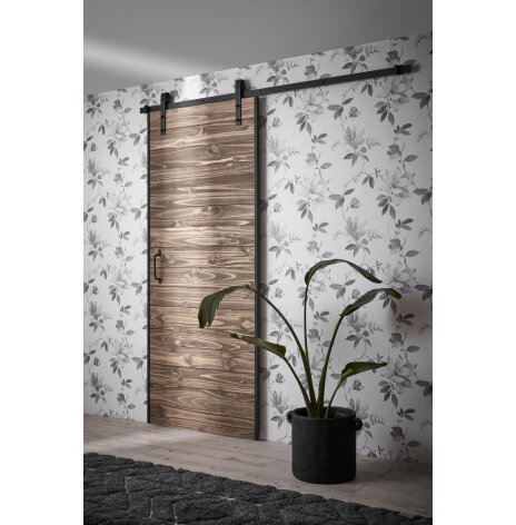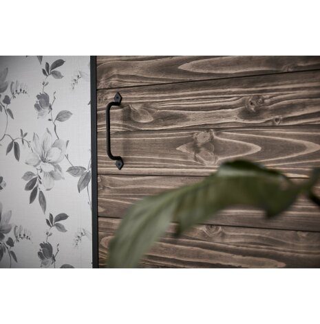 Skjutdörrshandtag av smide med rustik och lantlig karaktär. C/c 205 mm.