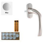 Komplett handtag till Svenska Fönster Rund/Rak Profil, Traryd Optimal Aluminium. Högerhandtag passar sidohängt, sideswing, överkantshängt och vridfönster.