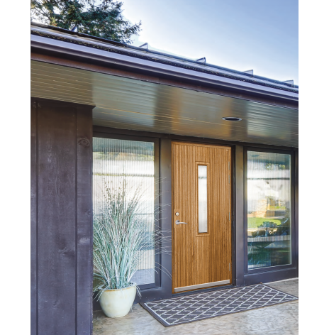 Ek/Teak-serien tillverkas i 3 varianter, slät, spårfräst och med pålimmade speglar i massiv teak eller ek. Alla dörrar har slät insida med stående ådring. Salningsspår är standard. Ek och Teakdörrar rekommenderas sitta i skyddat läge för att minska underhållet.