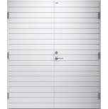 Ingela tät är en parytterdörr i modern stil med spårfräst dekor i form av liggande panel. Finns i ek, konstteak eller kulör. Insidan är slät, men går att få dekorerad som utsidan. Dörr och karm levereras vit NCS S 0502-Y som standard.