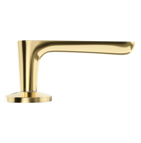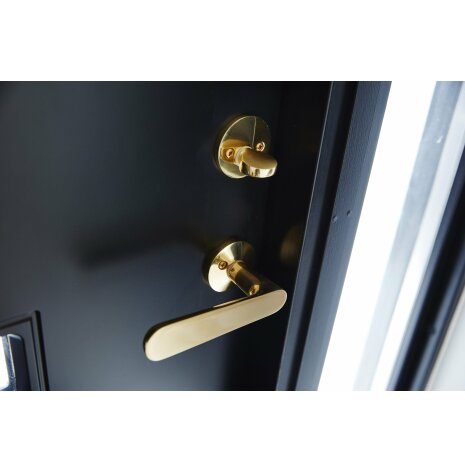 Designat dörrhandtag av mässing med dubbelverkande returfjäder. Kombinationen polerad/borstad mässing innebär att rosetten och handtagets baksida är i polerat utförande och framsidan i borstad mässing. Passar till dörrtjocklek 38-70 mm. Utsprång 65 mm.