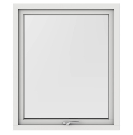 Outline vridfönster med 3-glas isolerruta. Vitmålat NCS S 0502-Y som standard, men kan fås laserat i ett antal standardkulörer.