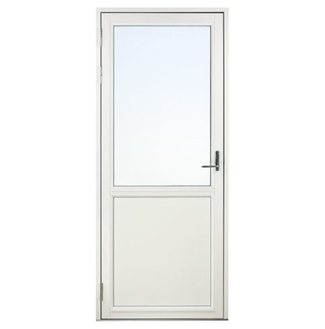 Dessa dörrar har en glasruta upptill med bröstning och isolerad fyllning i underkant. Det gör att glasrutans nedre kant bör linjera med fönster som sitter i anslutning till dörren. Du kan därmed välja om bröstningen ska matcha med fasta eller öppningsbara fönster. Har du t.ex. ett fast fönster med Modulhöjd 13 (=128 cm) brevid dörren väljer du Fast 13 som bröstning osv..